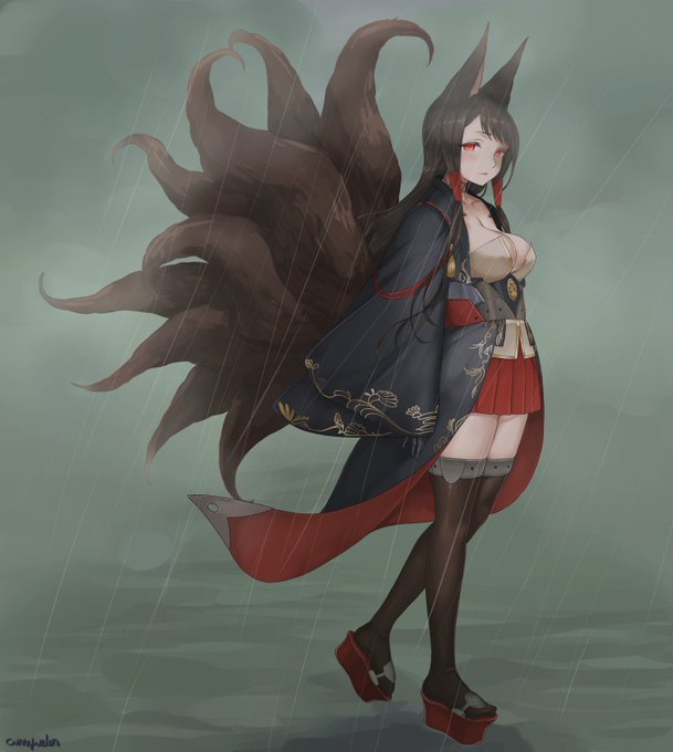 赤城完成!ホラーな感じで描きました。 #アズールレーン