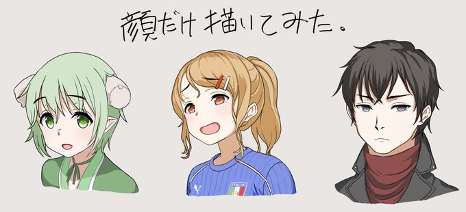 #リプきたキャラの顔だけ描く リプ頂いたレシィ、イタリア代表予選落ちを嘆くアクィラ、相互さんのオリキャラからジェノ先生を描きました!