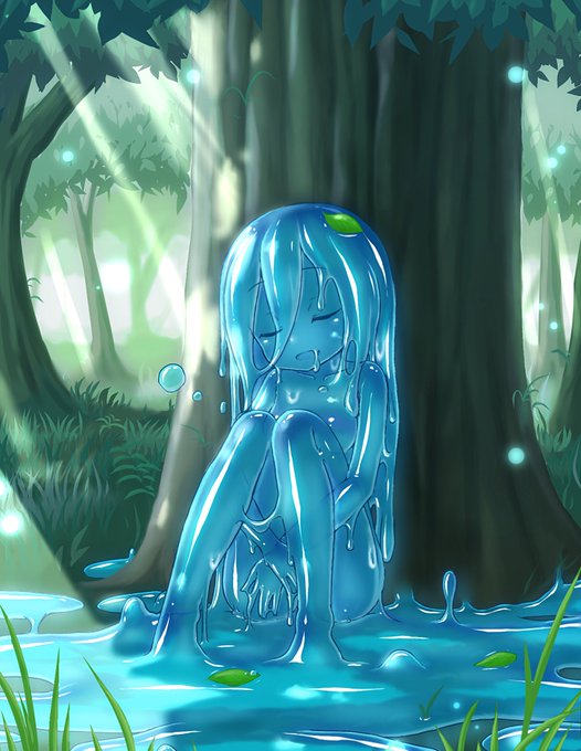#スライム娘版深夜の真剣お絵描き60分一本勝負 時間外参加&+20分で失礼します... れいいちさんとこのルピスちゃんです 元々気になってた子だったのもあって構図取りに手間取らなかったのが大きかった...