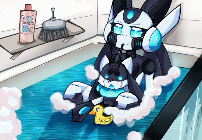 Bath time Robotio! ^^ (I drew the alt form and I used a gradient map)