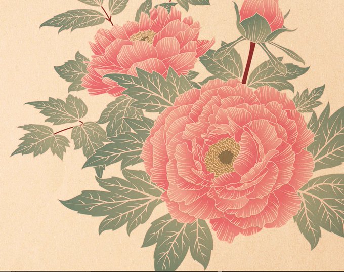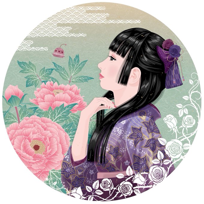 要望により「桔梗、牡丹、薔薇」の花を入れたイラレ制作の人物画。モデルは艶髪が素敵な深山もとみさん(@motomi_fukayama)。