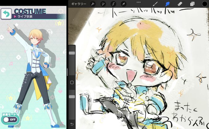 テンマァ…!髪型が見た目以上になんかバランスむずいし、衣装も改めて見るとなんつう苦手要素つめつめデザインなんだって軽率に初描きしてヒィヒィ言ってた