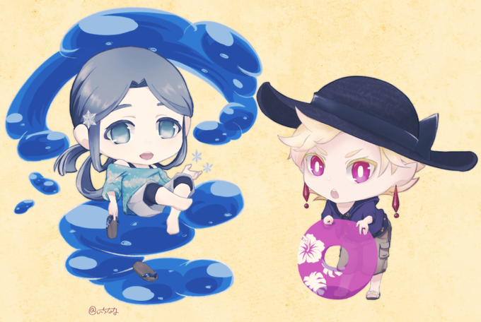 こっちがメインのやつ。目玉がでかすぎて奇しくも青いのと紅いの感のある並びになってしまった。チビキャラむずかしぬ。