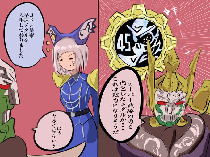 ヨドンとメダルと中の人ネタ (ヨドン皇帝とヨドンナ様のわちゃわちゃを描きたかっただけ) #魔進戦隊キラメイジャー #機界戦隊ゼンカイジャー