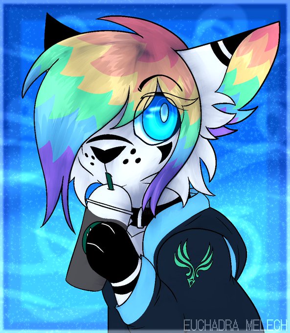 Drew my fursona drinking starbucks ehe