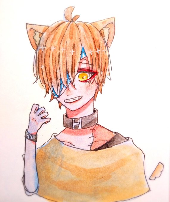 ハロウィンの時に描いたケモ耳クン画力落ちすぎ( 'ω')わろた ◀去年のハロウィン ▶今日描いた