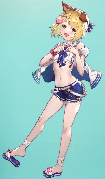 ゲーム内トミミの水着バージョンないので、 自分で描くしかない!そして、 描きかけのところ、出ました!! (゚∀。)<がはははは!面白い! #アークナイツ