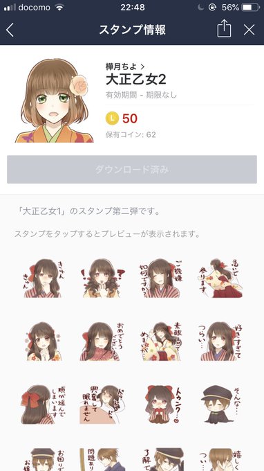 このLINEスタンプ使い勝手が良すぎる (樺月ちよ さんの大正乙女2) 大正時代で袴だし、可愛いし、男子もいてめっちゃカッコいいです...(*´∇`*)