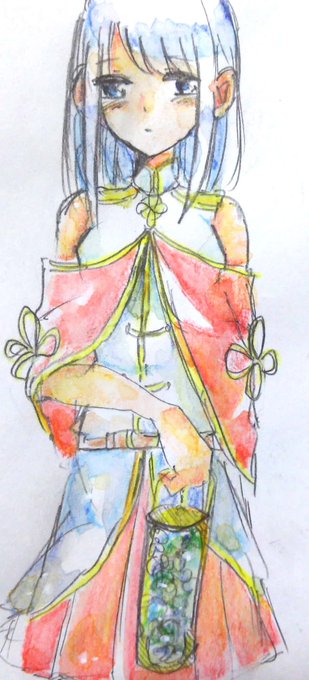 テストの息抜きに落描きを水彩色鉛筆で色塗りしてた #イラスト好きさんと繋がりたい #絵描きさんと繋がりたい