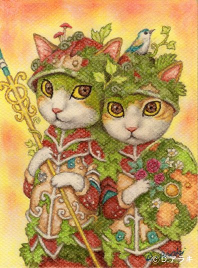 【アンジェリカ】ネコ科動物の国「ラントル」を治める11匹の猫貴族の4番目。他上位3匹の猫貴族とともに、王都ゴロナーグの王の城を囲むようにそれぞれ小さな城を建てて暮らしている。(D.アラキの裏地球より) 《原画販売済み》 #傘の日