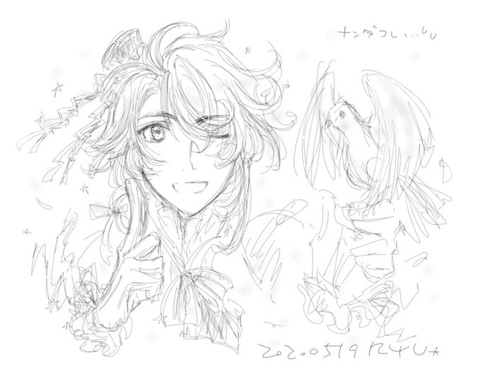 薄くてワカリヅラクテスマネェ…(;´Д`)んばちゃん描きました…主線をなぞる気力と近視乱視眠気疲労等で此れにて… #9月5日は刀帳95番の山姥切国広の日 #9月6日は刀帳96番の山姥切国広極の日