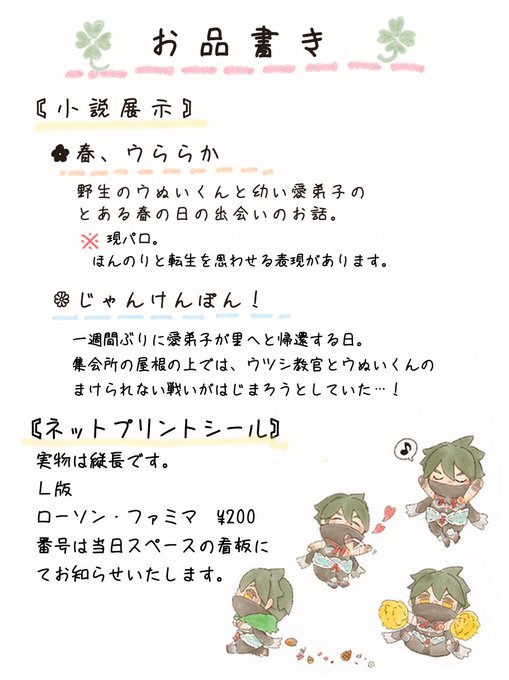 #ぬい狩魂おしながき #ぬい狩魂 ポイピクにて短いお話ふたつと、今まで描いたウぬいくん絵を展示。 ネップリの番号はスペースの看板でお知らせいたします。 ※2枚目のイメージ画像よりも少しだけ色が薄めです。