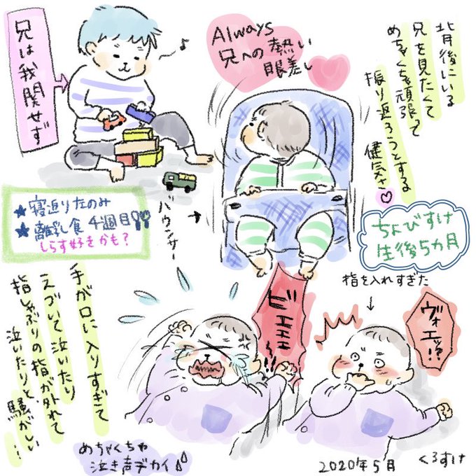 怒らないぞ…の翌日に爆発しては反省の日々😩でも兄弟の絡み見ると描かずにいられないおバカな可愛さです😂
