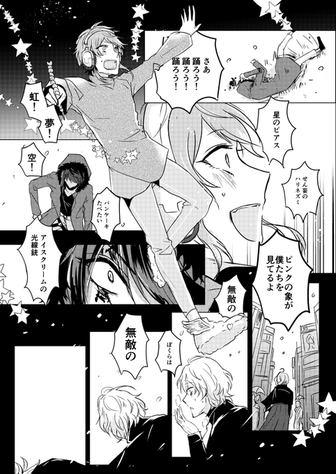 【期間限定再録】醒めない【ポッセ本】 https://t.co/9XDfceNtLd ちょうど去年の12月12日から始まる話なので期間限定で再録します。2019年1月発行のDRB後のシブヤで生きてるポッセの漫画です。お手に取って頂き有難うございました🍩🎆添付は抜粋です