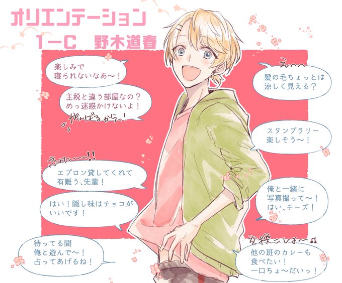 @UzukiTL 【1-C 野木道春】 はしゃいでは疲れてる典型的な感じです。色んなカレーを求めて練り歩く!!よろしくお願いします! #卯月高_オリエン