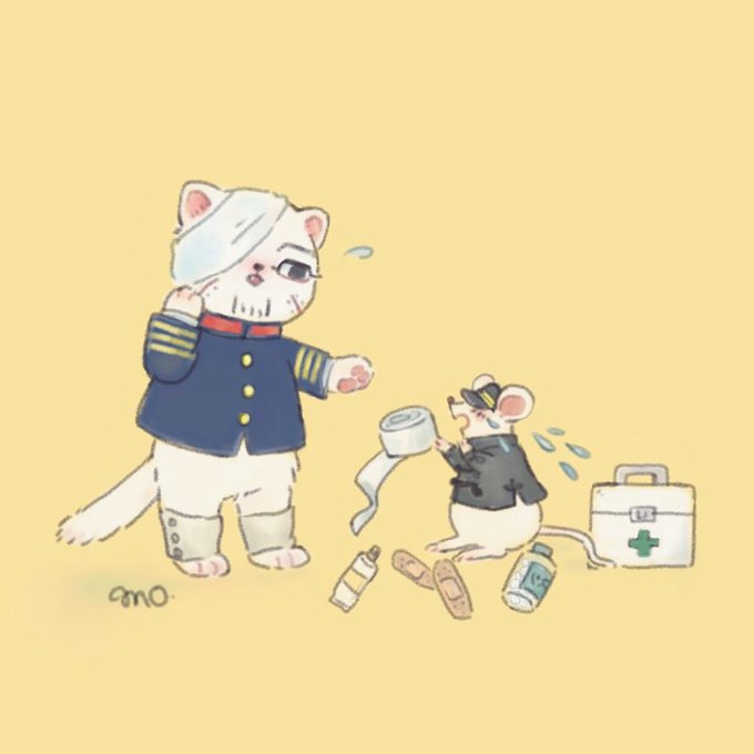 🐭「あぁ兄様!なんと痛ましいお姿に…!!お辛くありませんか!?」 🐱「ゆうさくさん落ち着いて下さい、ただのものもらいです」