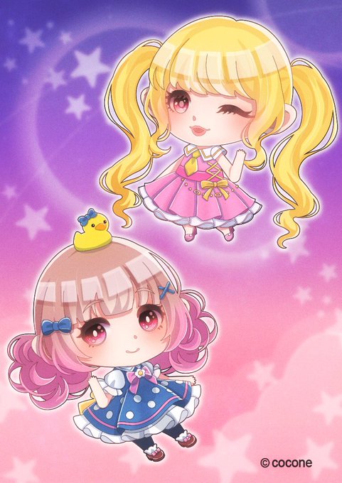#第2回ポケコロ塗り絵コンテスト 二人の服のカラーを入れ替えて見ました!背景はロード画面風です!