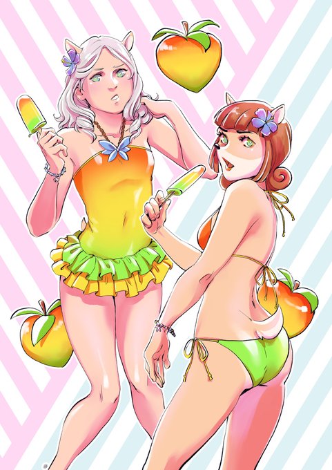 To celebrate the release of #Crash4 here's me and @SiakNoFethk in wumpa fruit swimwear~ 🍑👙🏖