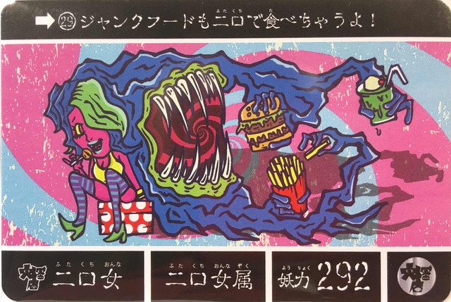 派生系企画でカード展!極悪な二口女やシール展でも大人気の大巳たかむらはカードダスのキラのように、シール素材のキラキラでした!