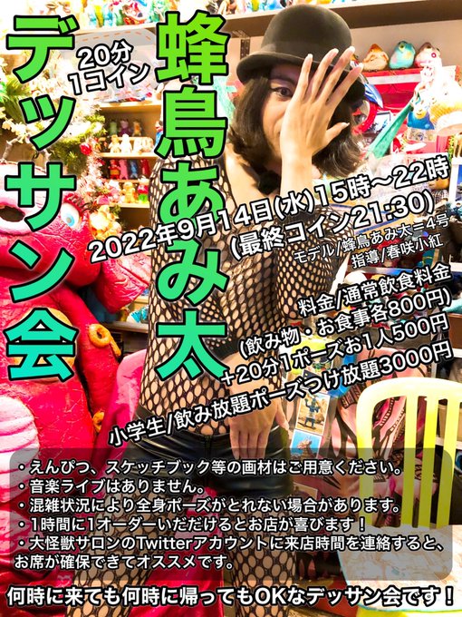 14日(水)蜂鳥あみ太のデッサン会15時〜22時