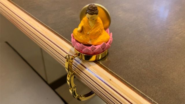 地獄に蜘蛛の糸を垂らすお釈迦様が、バッグハンガーになりました!おしゃれなカフェのテーブルに、慈悲の心を添えられます。よくばってたくさん荷物をかけすぎると壊れますので注意