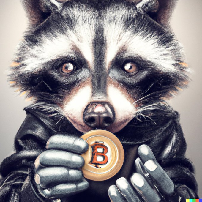 #micropayment #dalle2 #art #AI #cyberpunk #raccoon #holding #bitcoin #coin #hands #photo #realistic