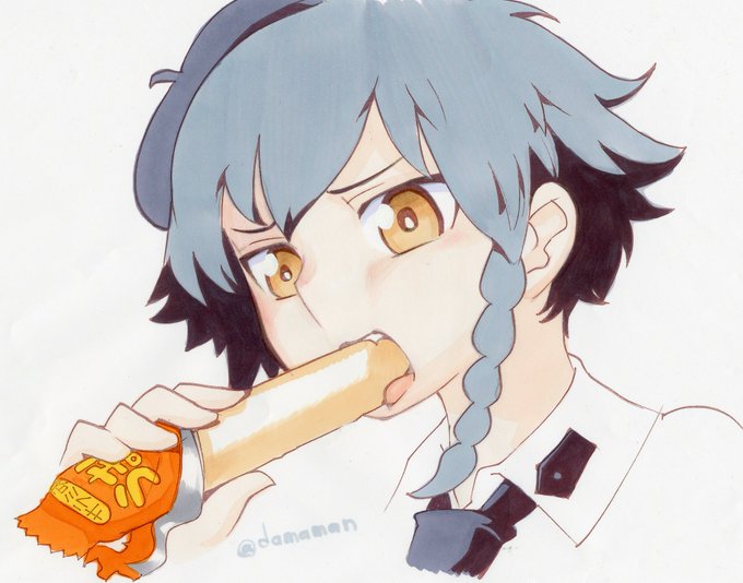 うまい棒を食べてたら食べ方を注意されたペパロニ「好きにふぁべさせろっての」#ガルパン版深夜のお絵描き60分一本勝負 遅刻すみません。