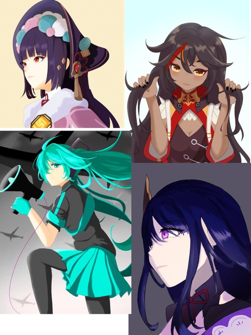 #今月描いた絵を晒そう 相変わらず原神ばかり、初めてミクさんも描いてみました。 大体描いてる絵は←向いてるな…