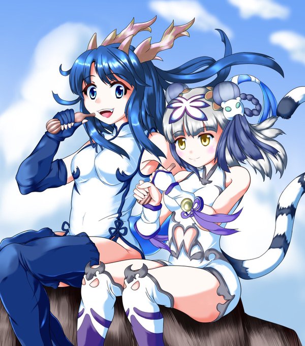 #暑いので涼しげな画像貼る (*´-`)つ パズドラ カリンちゃんとハク 過去絵