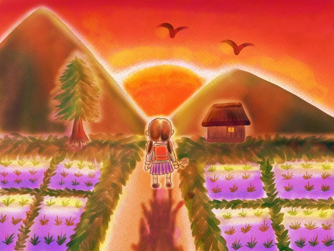 友達とたくさん遊んだ後の夕日を浴びながらの帰り道、