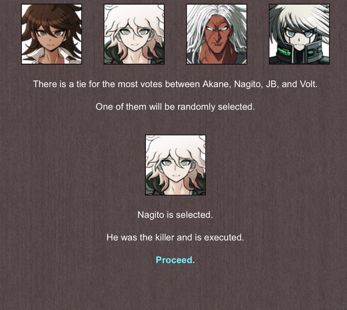 even after the old killing game, it seems nagito still hasn’t learned! nagito, also known as @SolarBlast47 has been found through a tie and executed!