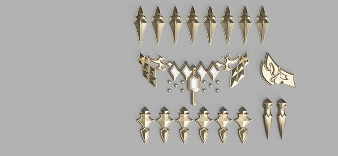 Renders of a Crystal Exarch accessory kit –– files up tomorrow, I think, but resin kit coming in the next month. (Psst to @LutaviaCosplay)
