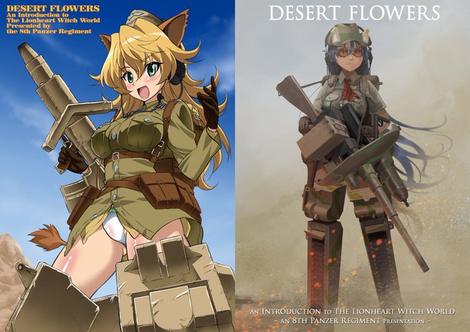 サークル「第8装甲連隊」コミック1販売情報をお送りします。[こ01a]にて獅子の魔女ワールドフルカラーイラスト集『Desert Flowers』頒布予定。既刊も色々用意しました。陸戦ウィッチてんこ盛りの本をよろしくお願い致します!