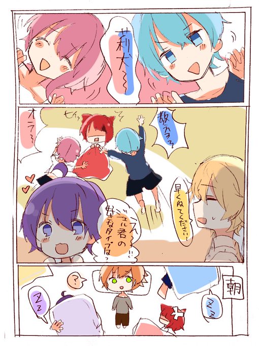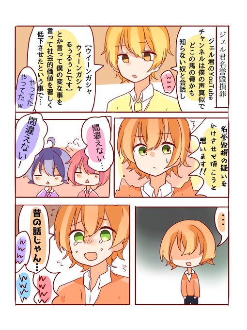 #すとぷりギャラリー ❤️[驚いてたじゃん] 💙[おばけじゃねーしこれ幽霊だし、あ、同じか] 💛[僕は脅かしてなんてないです…!]