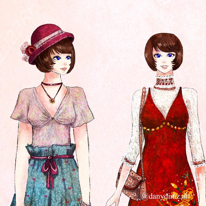 My character Louy and her vintage/retro inspired style ❤️🥰 #fashionart #ArtistOnTwitter