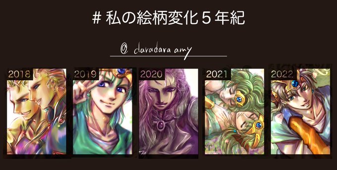 #私の絵柄変化5年紀 塗りで分けたー。 色々もりもり描いたなー。