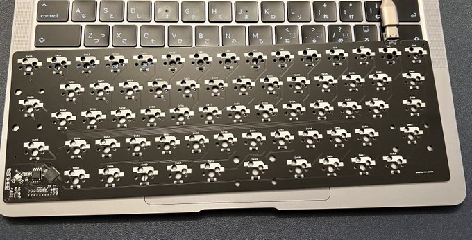 Yamada Iteya 取り敢えず並べただけ。 サイズフリーなんで角度をいくらでも付けられて素敵 。 147mm*334mmくらいなのでちょっと小さいかな。 左のシフトが2U、スペースバーが2.25U、2.75Uなことを気をつければベースキットで大丈夫なようにしてみた。 #自作キーボード