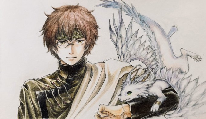 「他作品の衣装を着たチェンクロキャラ」ということで「最遊記の猪八戒の衣装を着た隊長(友情出演 コットン」を色鉛筆で描いてみました。(衣装とポーズは模写です) #チェンクロDiscord美術部 #とにかく