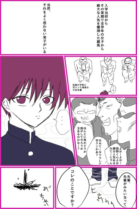 落書き漫画 ・蔵馬の中学時代 ・蔵馬がモブの金玉握りつぶす ・笑うところがないけどギャグのつもり ・急に白くなる