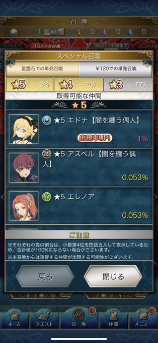 マジでピックアップに嫌われてる。 単発で3%を当ててそのあと1%のピックアップ出ないで0.053%のやつ出るとかほんと19/20を外すのと同じ。まぁそこは物欲センサーの干渉だから仕方ないけど。