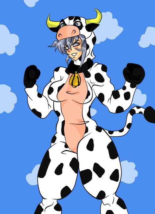 Aquí mi kikyo con atuendo de vaca por el calendario chino año del buey