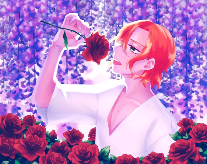 花を食べる(?ケイト🌹 ちょっとメモ… 藤>決して離れない 赤いバラ>あなたを愛します、熱烈な恋 赤いバラのつぼみ>純粋な愛 #twstファンアート #ツイステファンアート