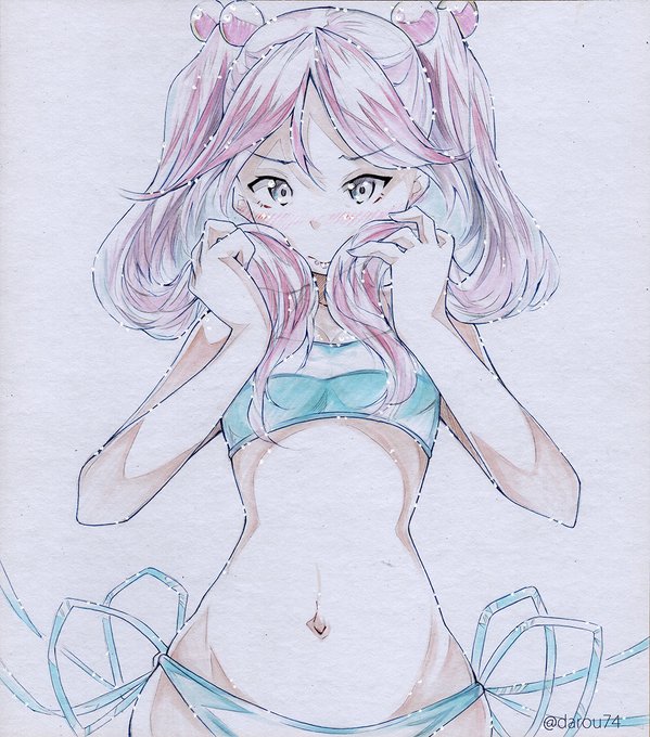 夏の水着、曙さん。 こちらは水着姿褒められて、反射で怒ってしまって後ですごく落ち込む予定の曙さん。