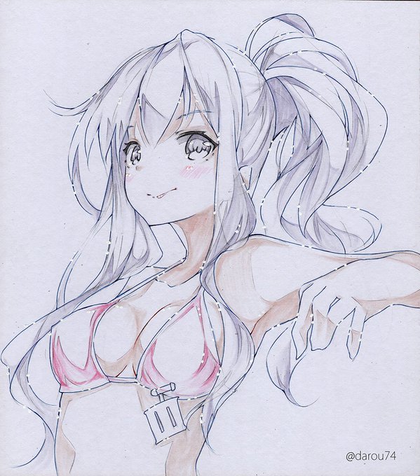セーラースク水五月雨さん。 友人のリクエストで描いてみました。