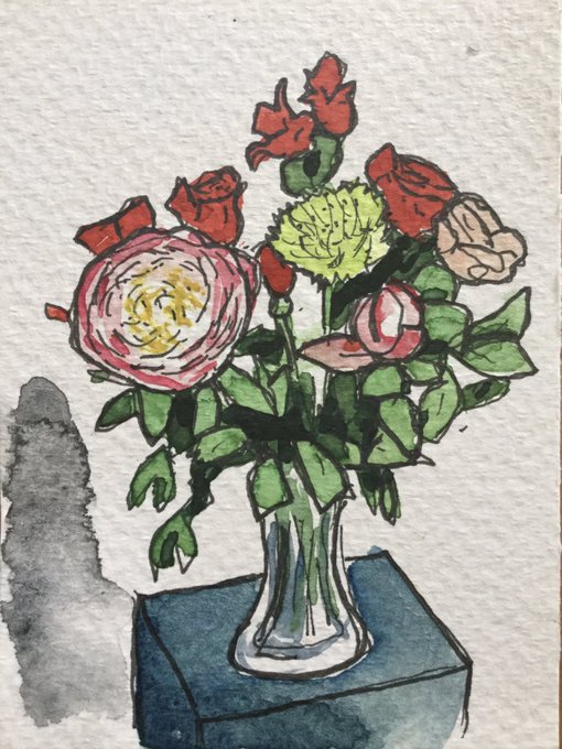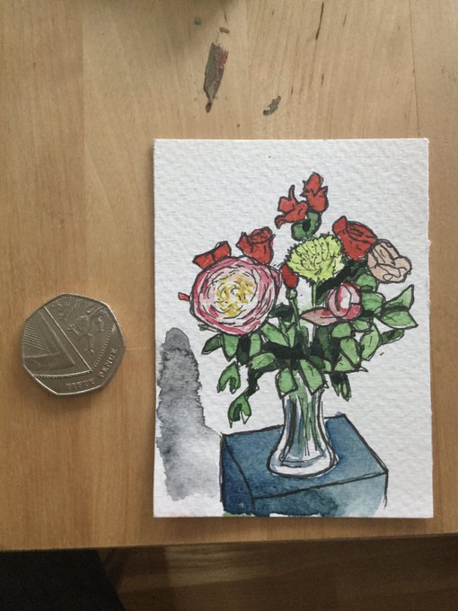 Tiny watercolour painting of Sally’s birthday flowers 1. 7.5 cm x 10 cm. https://t.co/hd5zUyaDKq