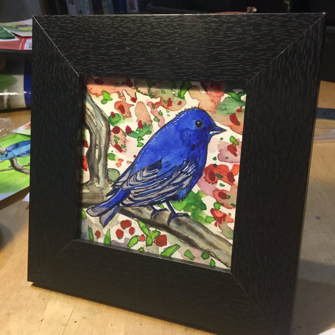 Indigo Bunting. Original framed watercolour. 15 cm square with frame. £55 plus p and p. DM me. 2/10.