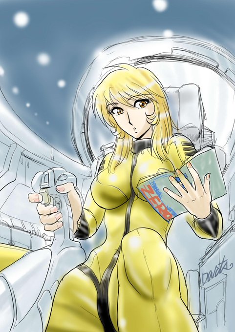 ワンドロ今週のテーマ「森雪」。一人でこっそりコスモゼロの操縦を勉強している雪です(^^)。線画に50分塗り10分。 #ヤマトでお絵描き60分一本勝負 #ymt60draw