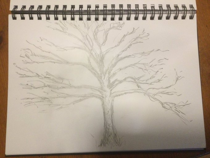 @GraniteElements @curlyparakeet sent me a photograph of a favourite oak tree so I have had a quick go at sketching it. I’ve also played with an art app having fun creating some dreamlike trees. And went to a great exhibition! #mycreativeweek