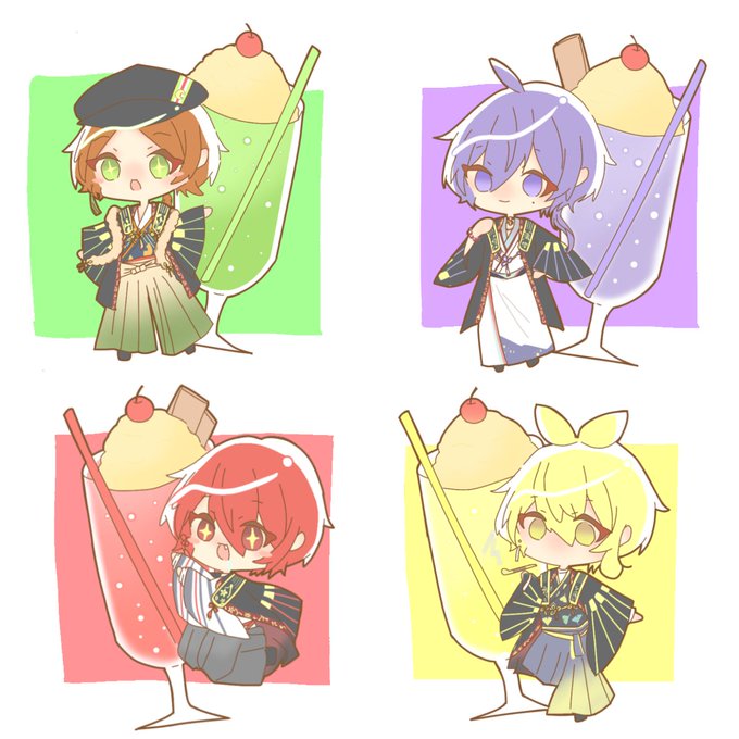 クリームソーダ💚💜❤️💛 全員しゅーごー! #うらたぬ王国の美術館 #志麻 #坂田です #センラの絵ぇやん