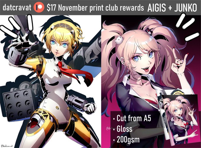 November's print club rewards on Patreon are Junko and Aigis✨Signup for these ends on November 30th. https://t.co/YJsdZCGoqK